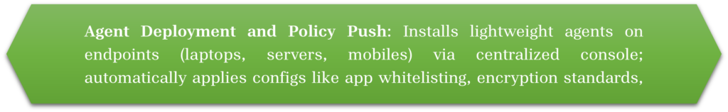 Endpoint security’s working mechanism is a seamless cycle of deployment, monitoring, and response that keeps devices secure.