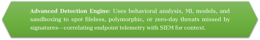 Adds behavioral analysis, ML/AI, and cloud intelligence to block fileless attacks, exploits, and unknowns pre-execution; proactive with minimal performance hit.​