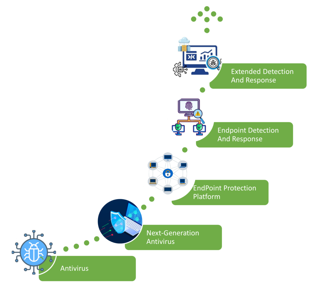 Endpoint security evolved through these layered technologies, each building on the last to counter sophisticated threats.